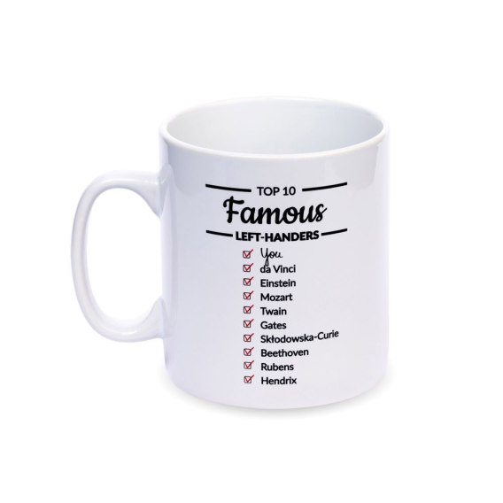 Kubek może być też dla nich inspiracją: sławne nazwiska plus prawie litr kawy pobudzą do działania i kto wie, może niedługo nazwisko Twojego leworęcznego przyjaciela naprawdę pojawi się na jednej z takich list?