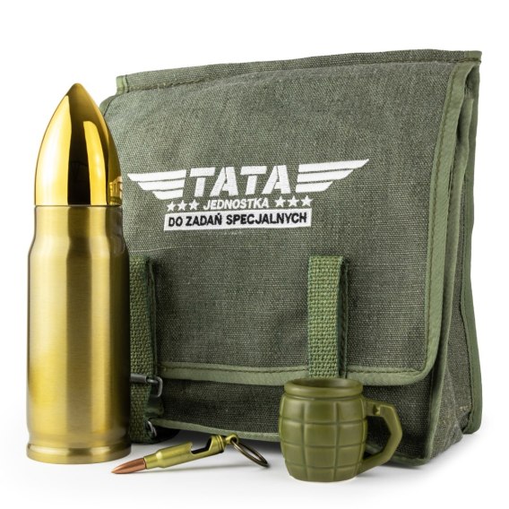 Zestaw "Jednostka do Zadań Specjalnych" jest nie tylko symbolem siły i determinacji, ale także dowodem na to, że dostrzegamy i doceniamy wszystkie jego starania. W skład zestawu wchodzi niezwykły termos w kształcie pocisku, intrygujący otwieracz do butelek oraz kubek w kształcie granatu. Oryginalna, klasyczna wojskowa torba polskiej armii, dodaje całości niepowtarzalnego charakteru.