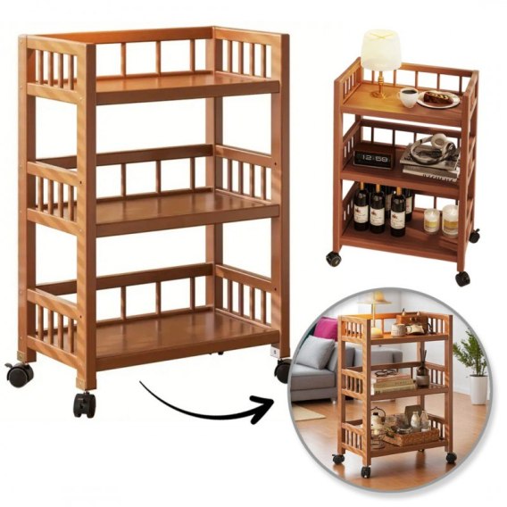 Bambusowy regał, mobilna szafka na kółkach 30 x 50 x 82cm SZ48