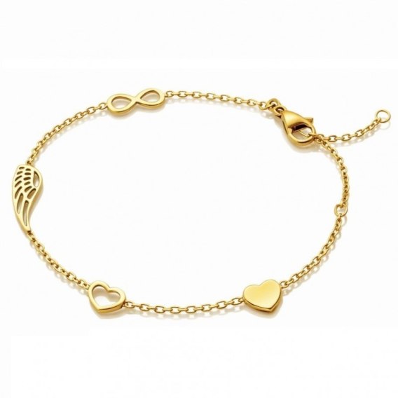 Bransoletka na rękę stal chirurgiczna pozłacana 14k złotem Celebrytka, skrzydełko, serca BST1554