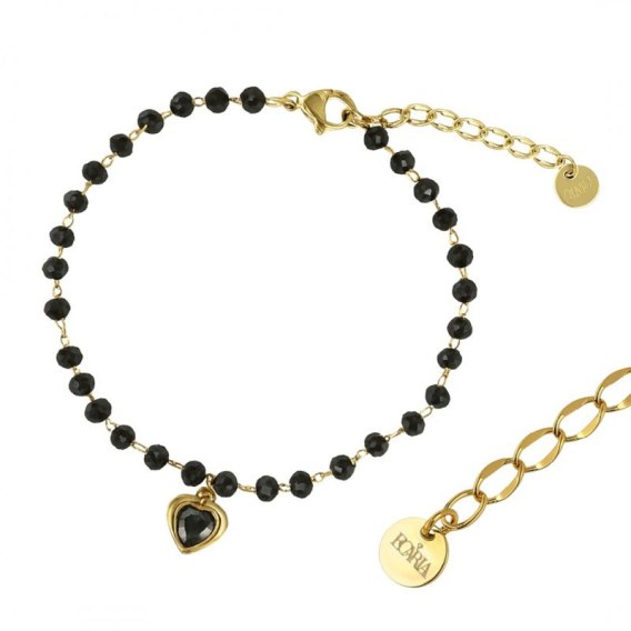 Bransoletka na rękę stal chirurgiczna pozłacana 14k złotem czarna, SERCE BST1569