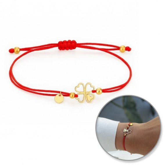 Bransoletka na rękę stal chirurgiczna pozłacana KONICZYNA, czerwona na sznurku BST1553