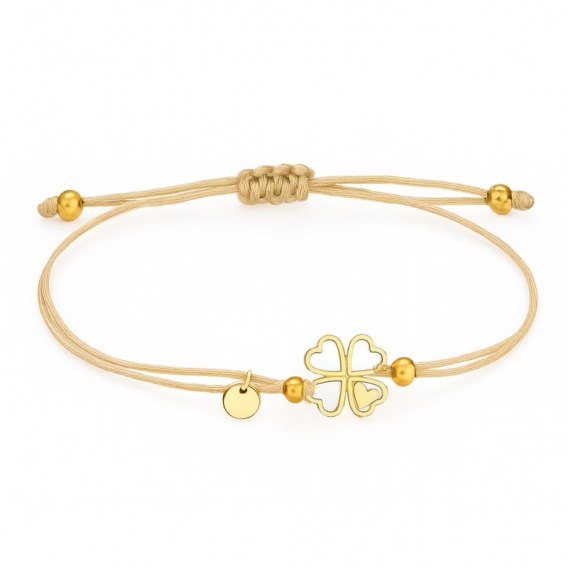 Bransoletka na rękę stal chirurgiczna pozłacana KONICZYNA, kremowa na sznurku BST1553K