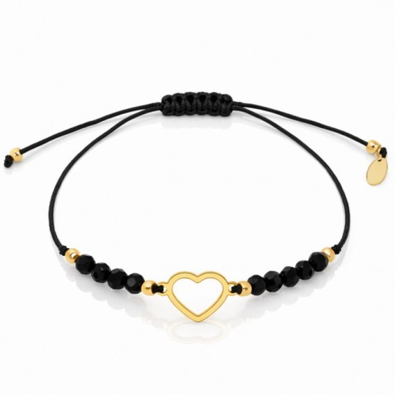 Bransoletka na rękę stal chirurgiczna pozłacana SERCE, czarna na sznurku BST1601