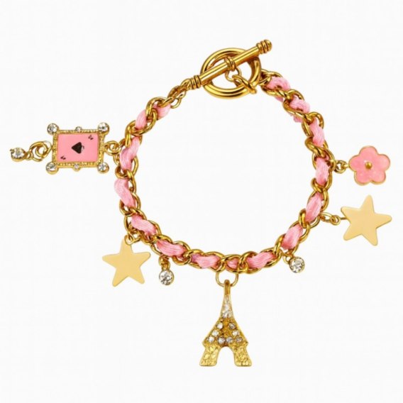 Bransoletka zawijana, rzemyk różowy, złota z zawieszkami B123R