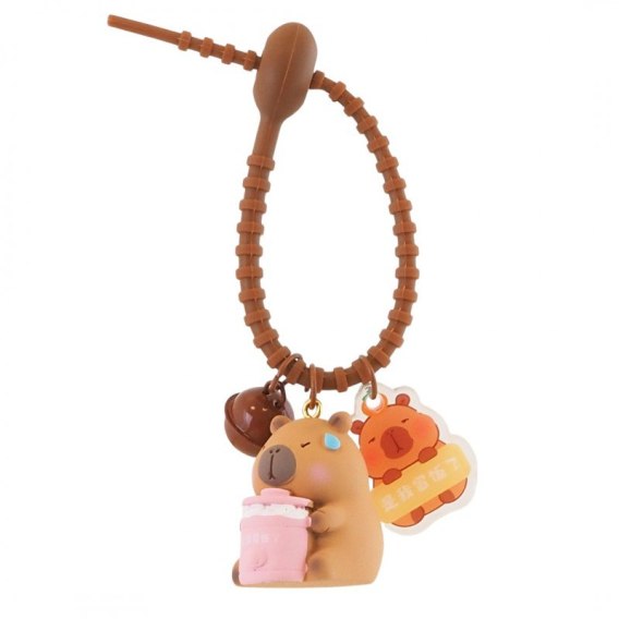 Brelok do kluczy Kapibara 3,6 x 2,7 cm ze słoiczkiem, przywieszką i dzwoneczkiem BRL337