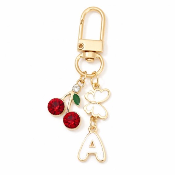 Brelok do kluczy LITERKA "A" 6,5cm WISIENKI, cyrkonie, złote z motylkiem BRL412A