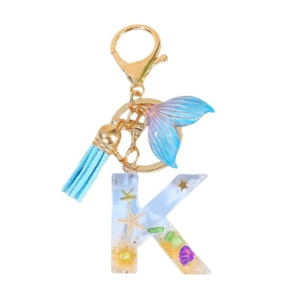 Brelok do kluczy LITERKA "K" , MORSKI, ogon syreny, muszelki, frędzle BRL353K