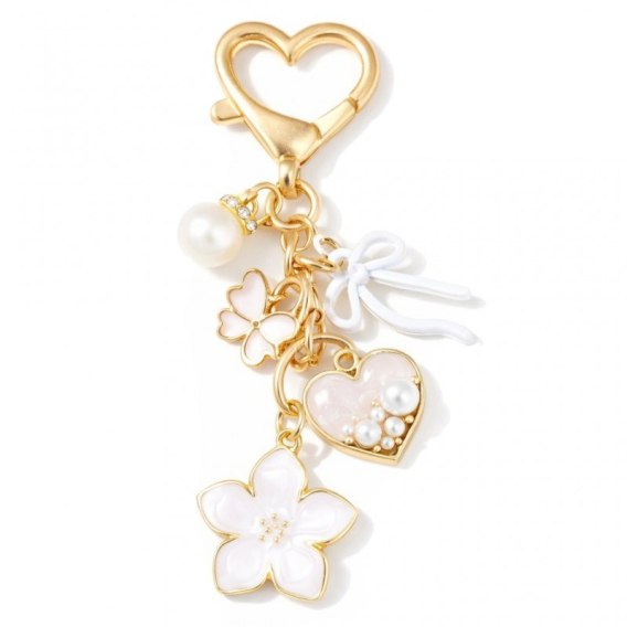 Brelok do kluczy różowy KWIAT, serce, kokardka, złoty BRL414B