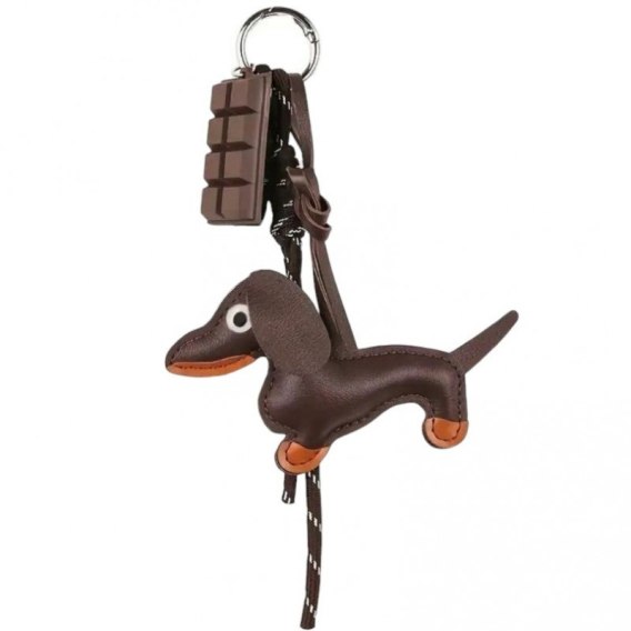 Brelok do kluczy skórzany JAMNIK brązowy z czekoladą BRL401