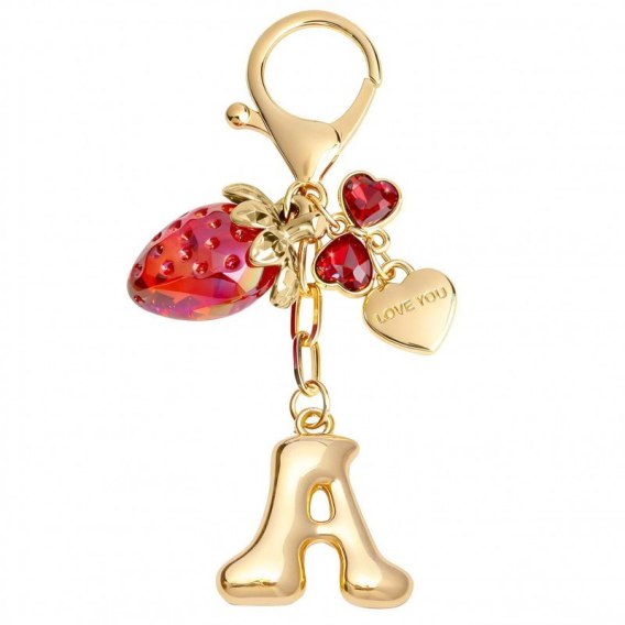 Brelok do kluczy złota LITERKA "A", TRUSKAWKA, czerwone SERCA BRL413A