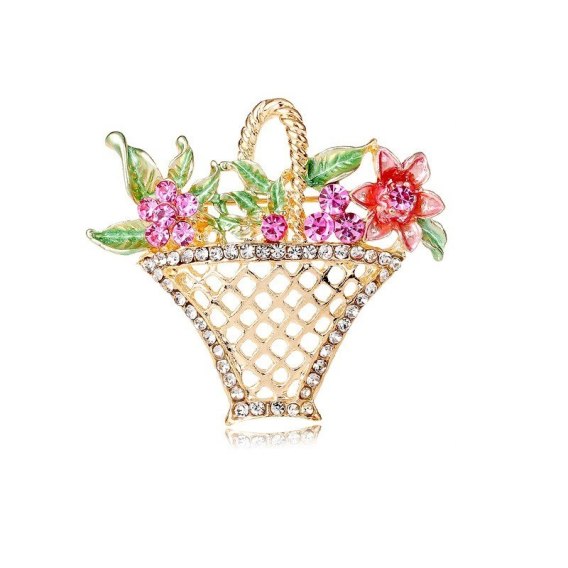 Broszka ozdobna Kryształowy Koszyczek z Kwiatami BZ137