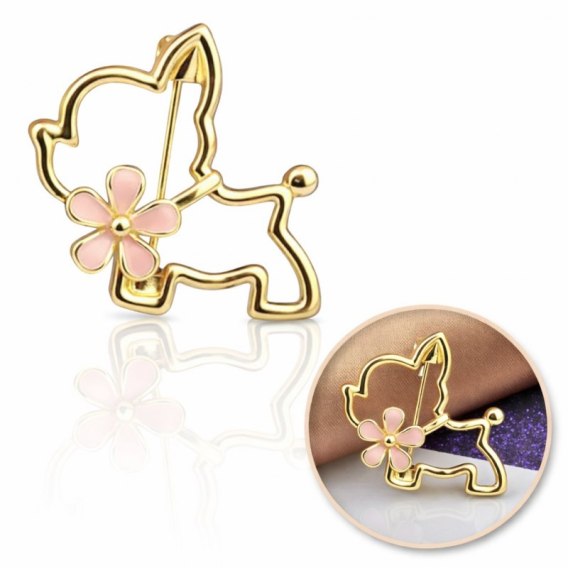 Broszka ozdobna emaliowana - piesek z kwiatkiem BZ210