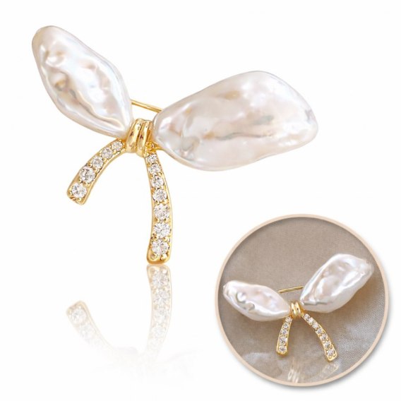 Broszka ozdobna - kokarda perły z cyrkoniami BZ213