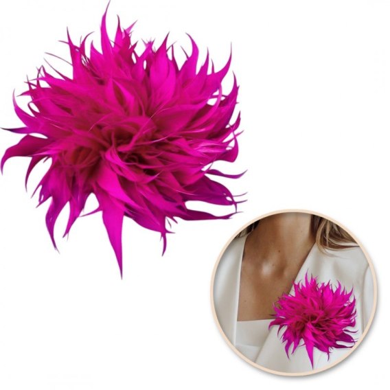 Broszka ozdobna, spinka do włosów 2w1 pióra fuksja BZ207F