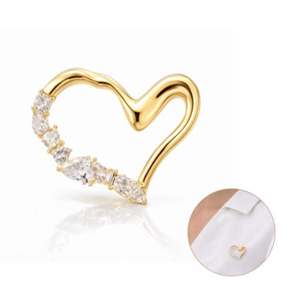 Broszka ozdobna - złote nieregularne Serce z cyrkoniami BZ231