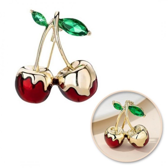 Broszka ozdobna złote soczyste WISIENKI oblane złotem BZ198