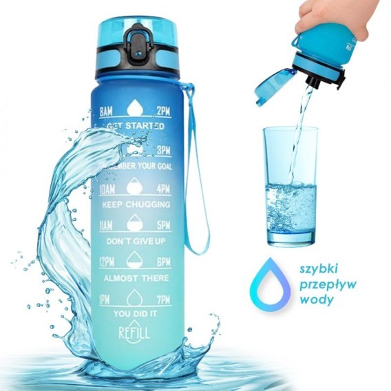 Butelka na wodę, bidon z miarką 1L OMBRE Granat z Turkusem BD17