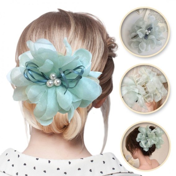 Duża kokarda tiulowa z perełkami, spinka do włosów, klamra SP323M