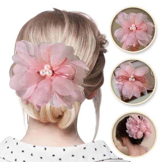 Duża kokarda tiulowa z perełkami, spinka do włosów, klamra SP323R