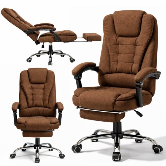 Fotel biurowy obrotowy BOSS z podnóżkiem - brązowy MATERIAŁ KO22BR-MAT