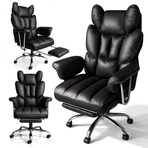 Fotel biurowy obrotowy RELAX PRO z podnóżkiem - ecoskóra czarny KO50CZ