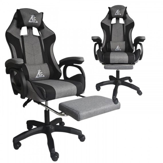 Fotel gamingowy obrotowy STRIKE z podnóżkiem i poduszkami, szary KO40SZ