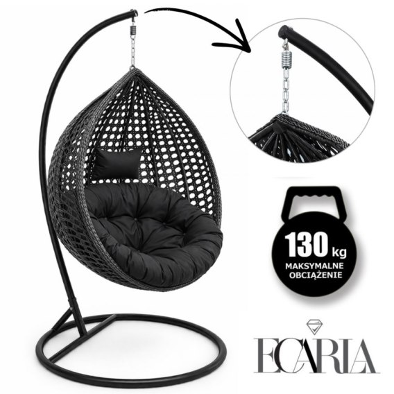 Fotel wiszący huśtawka kokon z czarnymi poduszkami, czarny KR41