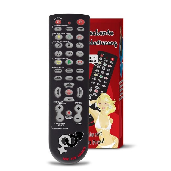 Gadający Pilot - Steruj Kobietą to urządzenie, którego projekt mógł zrodzić się tylko w umyśle mężczyzny. 33 niezbędne funkcje, a wśród nich „Podaj piwo!", „Idź do mamusi", „Zamilcz Kobieto!". Dla spragnionych mocnych wrażeń przewidziana jest sekcja „Łóżkowe igraszki", nie zabrakło też „Romantycznej sekcji ratunkowej". Pilot wydaje komendy sugestywnym głosem profesjonalnego lektora, aby Twoja kobieta nie musiała czytać ci w myślach.