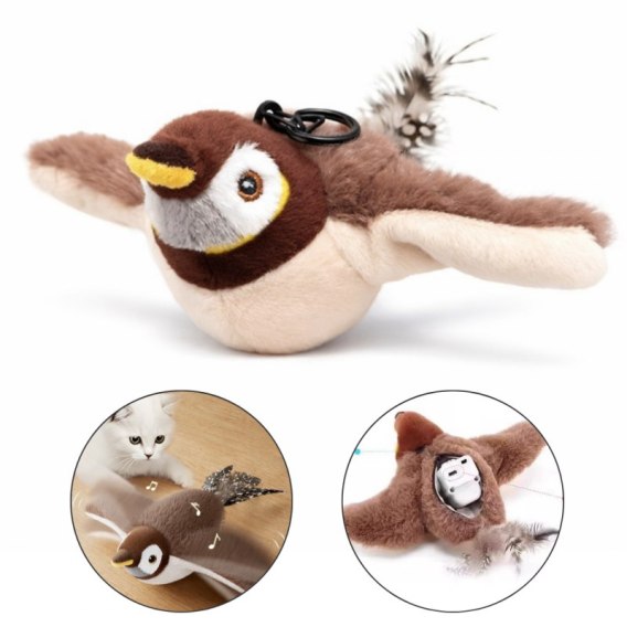 Interaktywna zabawka, grający ptak, wróbel dla kota, 24x20x9cm USB KOT39