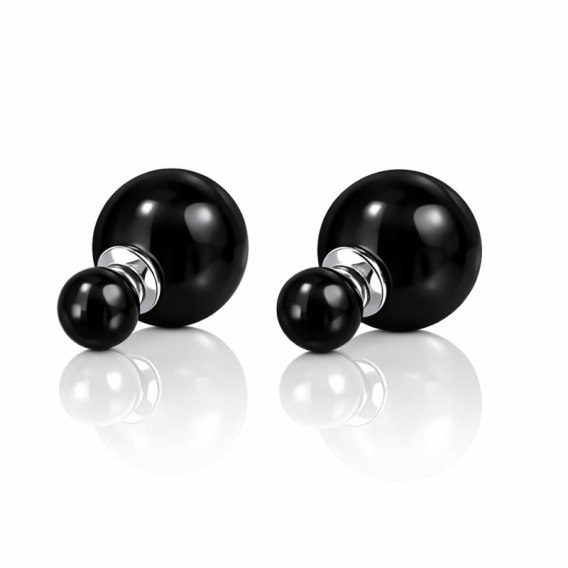 KOLCZYKI KULE TRIBALL PODWÓJNE SZTYFT BŁYSK CZARNE K69CZ
