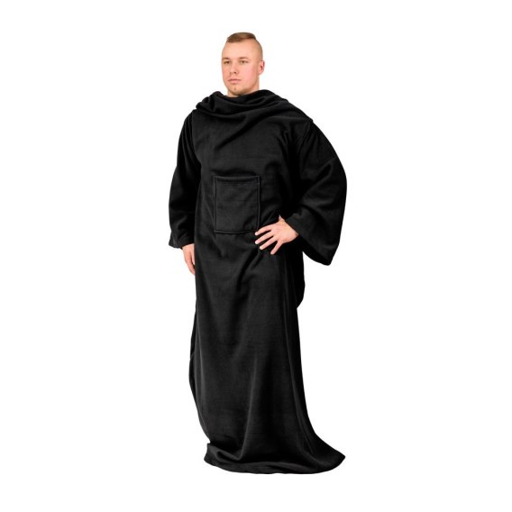 Kocyko - Szlafrok Czarny ciepły koc z rękawami