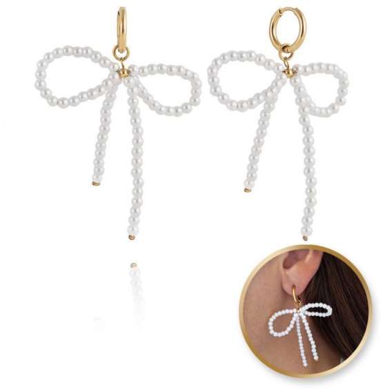 Kolczyki KOKARDY wiszące ze stali szlachetnej pozłacanej, perełki KST3281