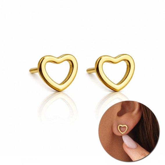 Kolczyki SERCA ze stali szlachetnej platerowane 14k złotem, delikatne KST3401
