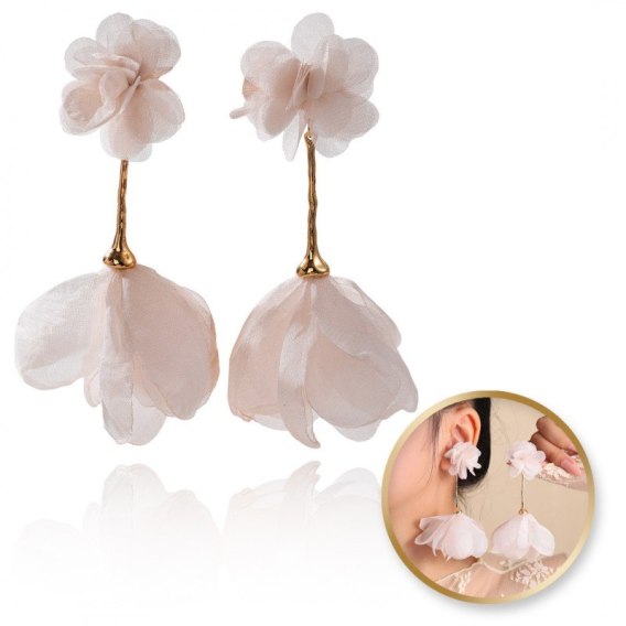 Kolczyki wiszące, efektowne tiulowe kwiat, pudrowy róż K1704