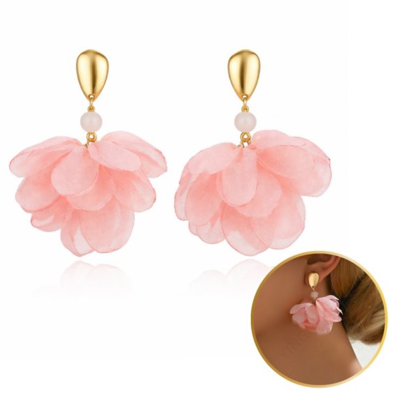 Kolczyki wiszące, efektowne tiulowe z kryształkami, róż złote sztyft K1723R