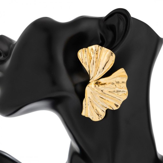 Kolczyki wiszące, efektowne złote blaszki liście miłorzębu K1722