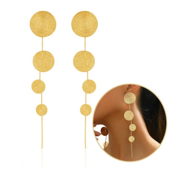 Kolczyki wiszące, efektowne złote kółka, blaszki, sztyft długość 15 cm K1713