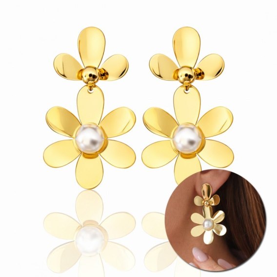 Kolczyki ze stali szlachetnej platerowane 14k złotem KWIATY perły KST3381
