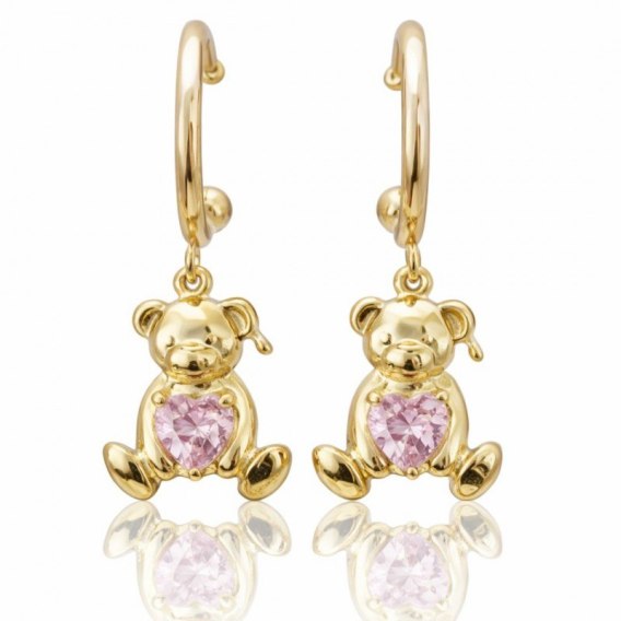 Kolczyki ze stali szlachetnej platerowane 14k złotem Miś z różowym sercem KST3157