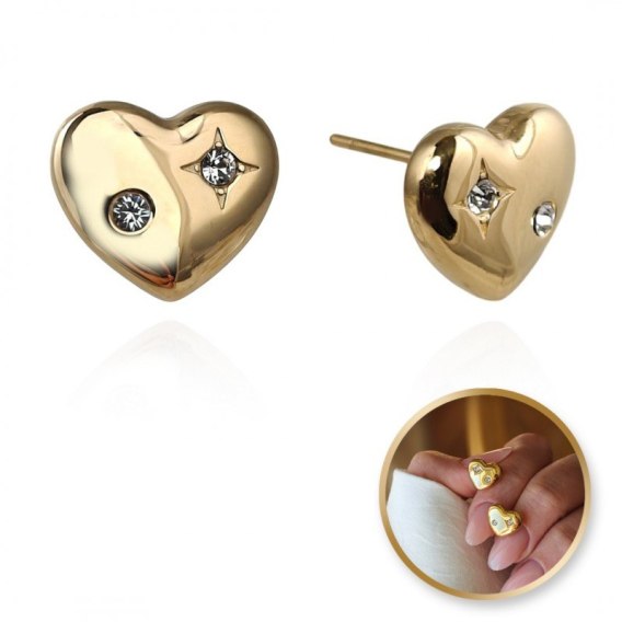 Kolczyki ze stali szlachetnej platerowane 14k złotem, SERCA cyrkonie KST3394