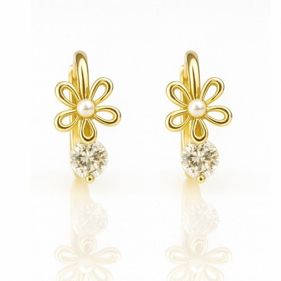 Kolczyki ze stali szlachetnej pozłacane 14k złotem, Kwiatuszki z perełką KST3519