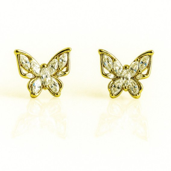 Kolczyki ze stali szlachetnej pozłacane 14k złotem, cyrkonie motylki KST3491