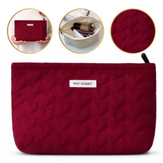 Kosmetyczka jednokomorowa pikowana serca bordowa 25 x 5 x18 cm KS120BOR