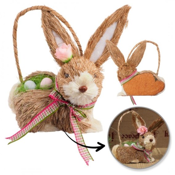 Koszyk, Koszyczek słomiany Króliczek Wielkanocny święconka 11x14x20cm ROS16