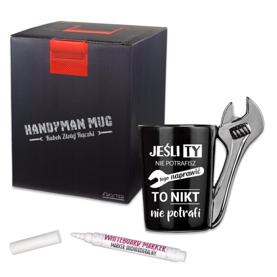 Napis na Kubku Złotej Rączki sprawi, że zrobi się cieplej na sercu każdemu - od dziadka pomocnego w naprawie samochodu, przez tatę, który skręcił nam biurko, aż po brata, który naprawił naszego laptopa. Mąż, który potrafi naprawić kapiący kran czy kolega pomocny w montowaniu półek, także chętnie napiją się z niego gorącej herbaty. Podaruj go na Dzień Ojca, Dzień Chłopaka, urodziny i na każdą inną okazję, podczas której chcesz podziękować naszej Złotej Rączce.