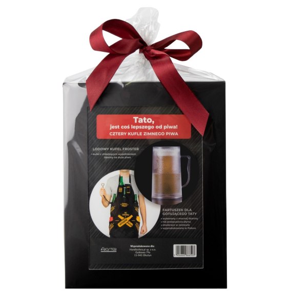 Gotowy do wręczenia na prezent bez konieczności dodatkowego pakowania. Napis na produkcie: Tato, jest coś lepszego od piwa! CZTERY KUFLE ZIMNEGO PIWA. Produkt w polskiej wersji językowej.