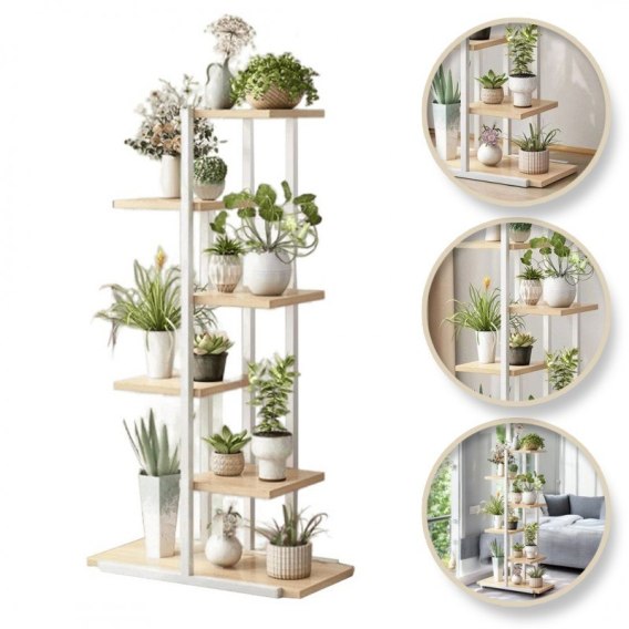 Jeśli uwielbiasz rośliny ten regał jest dla Ciebie! Twoje rośliny w końcu będą pięknie wyeksponowane. Dzięki 6 półkom pomieści sporę ilość doniczek. Stwórz swoją własną kwietną kompozycję!