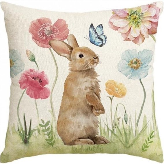 Lniana poszewka na poduszkę 45 x 45 cm motyw wiosenny Króliczek POD222