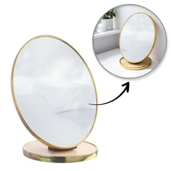 Lusterko kosmetyczne stojące drewniane, owalne, złota ramka 15 x 20cm L18
